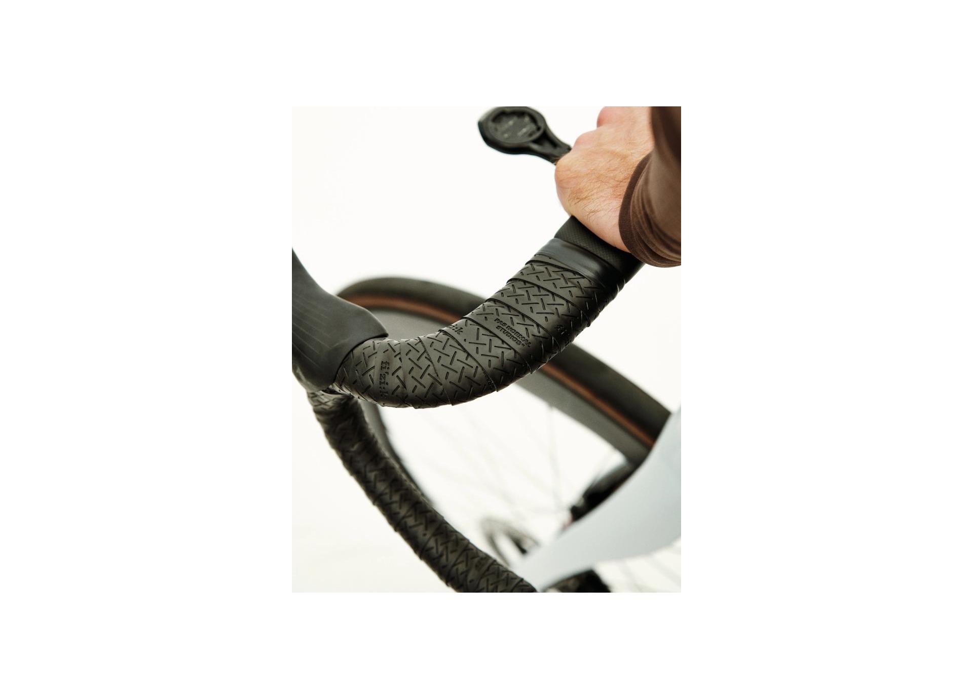 A bar tape designed for racing, delivering reduced weight and ultimate control. Made from thin 2mm Microtex synthetic single-layer foam, the tape weighs only 41g. The tacky, non-slip surface with a raised textured finish ensures maximum grip in all conditions. Pas Normal Studios and Fizik logos are stamped into the tape surface, along with the signature Pas Normal Studios elastic grip structure. The end caps come in a dark purple finish.