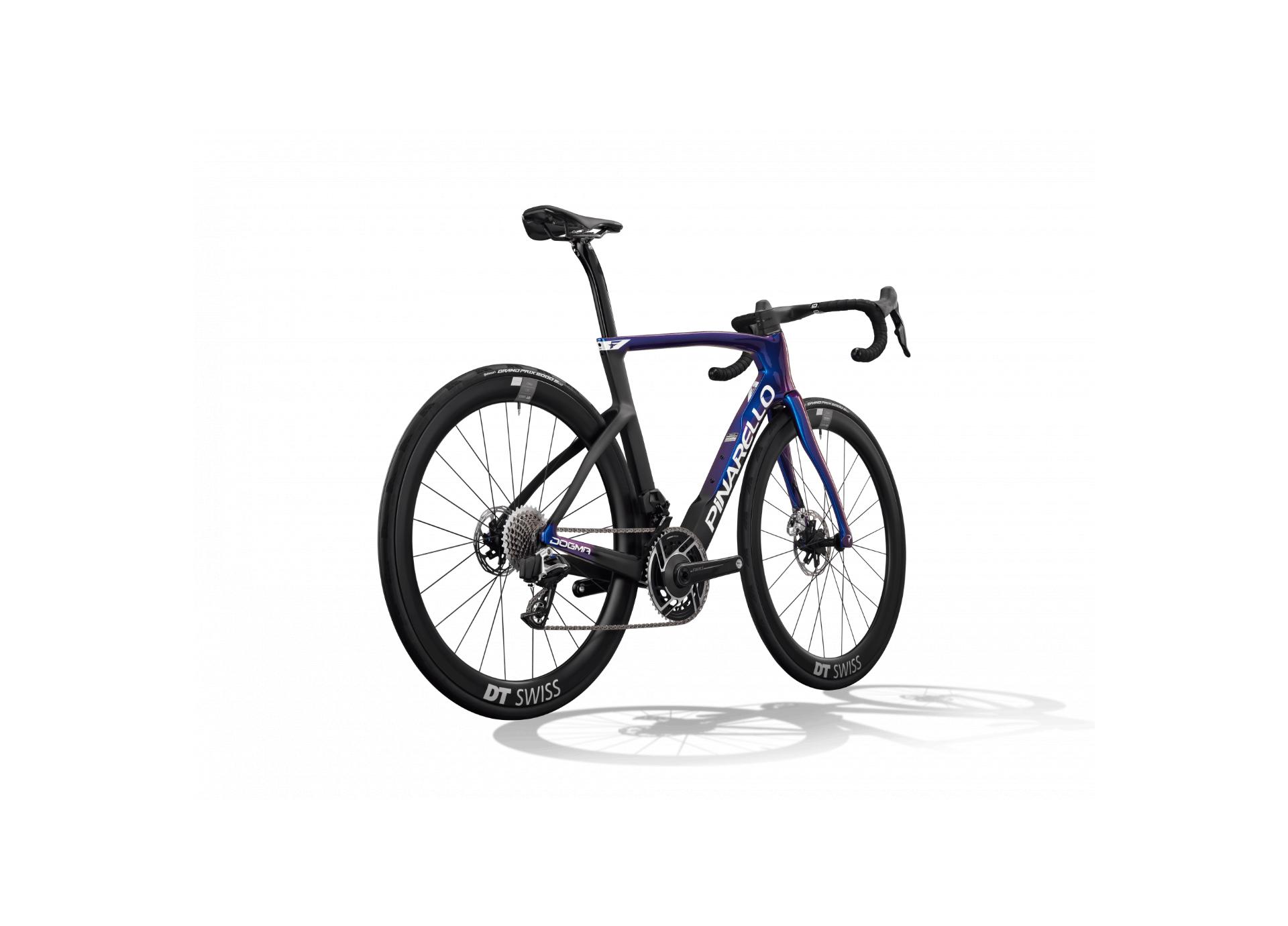 Technology for breaking the hour record. The new DOGMA F downtube has been reshaped by 3.5° to create a wedge shape that improves the aerodynamic performance of the bottom bracket area by 1.2%.