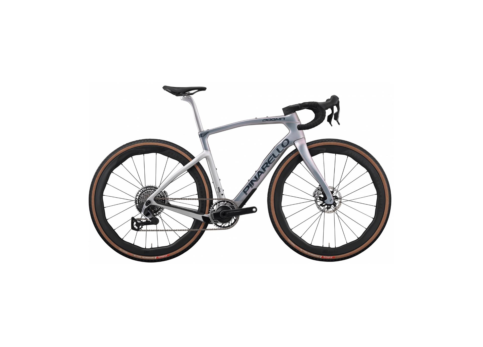 The DOGMA GR is the perfect blend of three of Pinarello's most popular bikes. It combines the speed and responsiveness of the DOGMA F, the agility and control of the CROSSIST, and the grip of the DOGMA XC. The DOGMA GR isn't just a gravel bike—it's a rocket on the pavement, blasting through gravel and dominating the most technical sections.