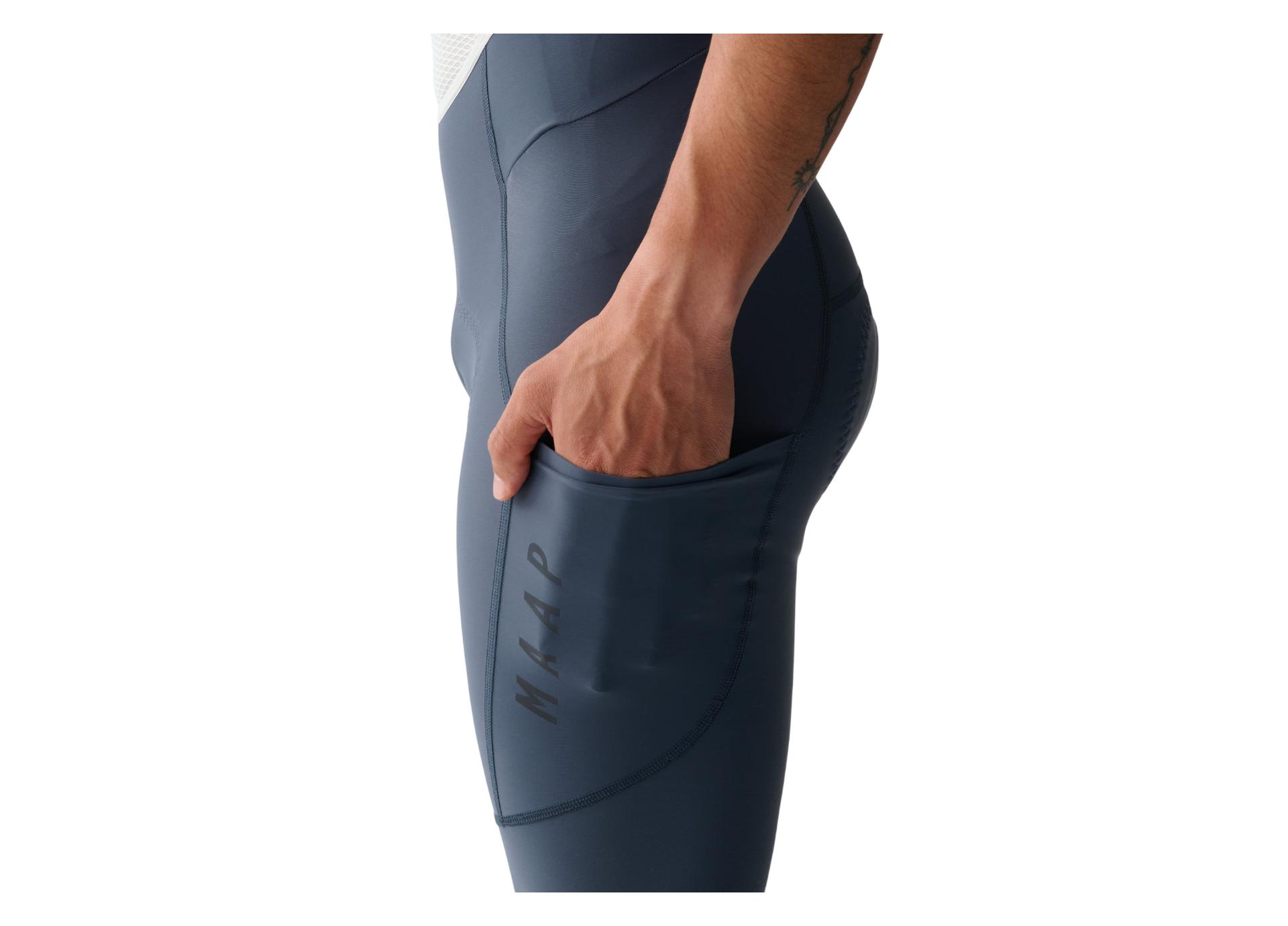 Performance, aesthetics, and high functionality come together in the all-new Team Bib Evo Cargo Tights. Lightweight materials combined with seamlessly integrated cargo pockets provide additional storage and easy access, leaving you free to ride in your jersey or T-shirt. Designed for all-day wear, featuring advanced MAAP suede technology and an ergonomic, masculine fit.