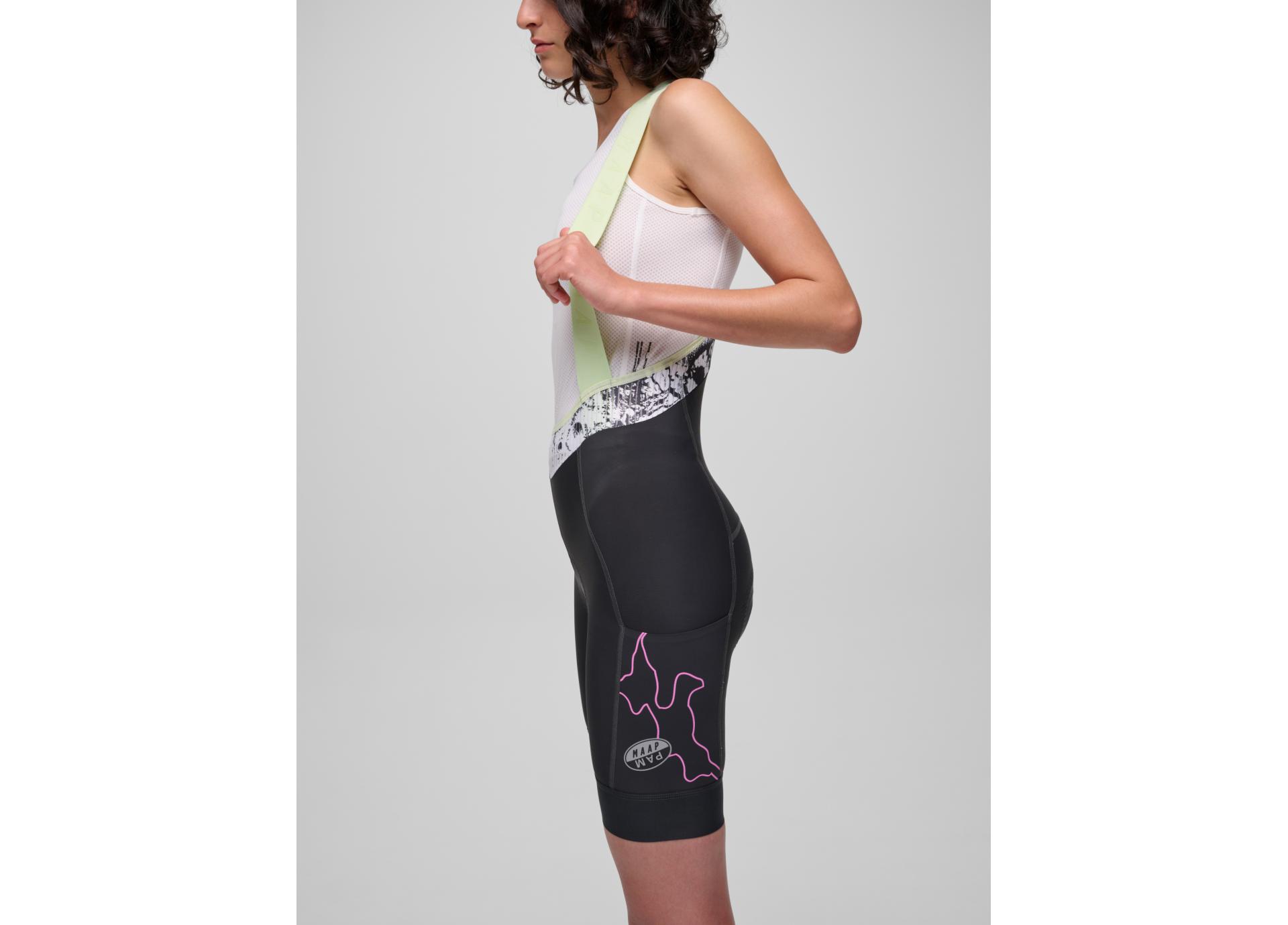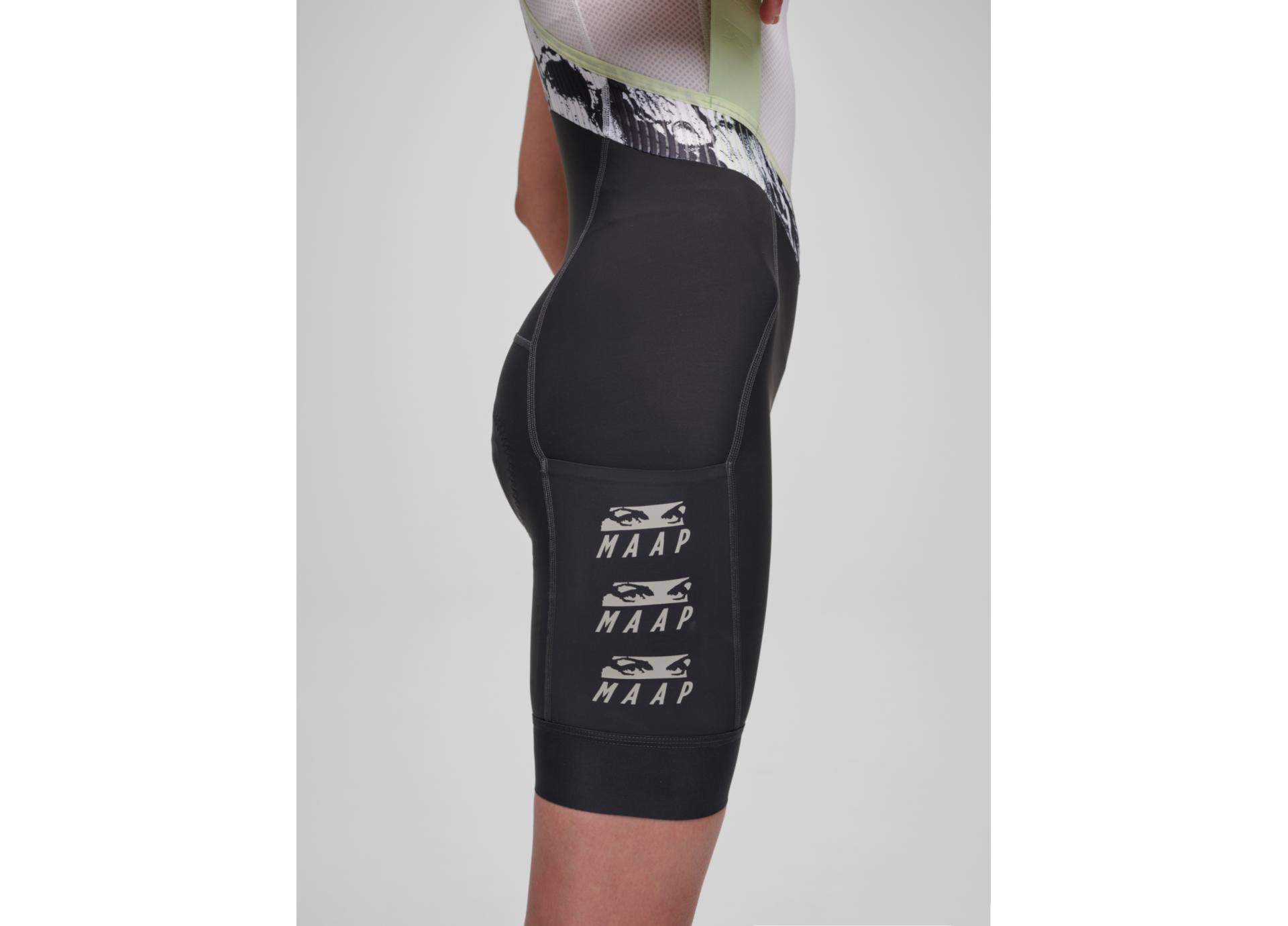 Redefine your performance with the new MAAP Team Bib Evo shorts, a bold evolution of our most popular model. A multi-layer 3D Thermo Molded chamois provides superior comfort for long days on the bike, while laser-cut perforations ensure maximum breathability no matter the conditions. The main body fabric is designed for optimal stretch and shape retention, as well as anti-pilling and high abrasion resistance. Constructed with a seamless, wide elasticated bib strap that alleviates pressure points, combined with a lightweight mesh back panel for breathability. Ergonomically designed in a men's fit, the Team Bib Evo features a lower waist, fitted hips and elasticated lower leg, along with breathable and moisture-wicking materials. These pants are designed for ultimate comfort during your longest days in the saddle.